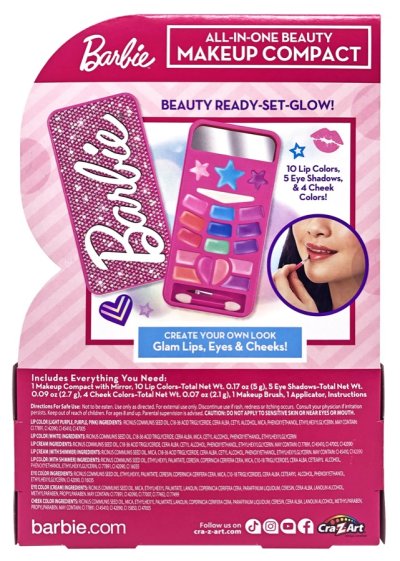 Barbie a líčidlá! Líčidlá sú uložené v puzdre, ktoré má design Barbie.