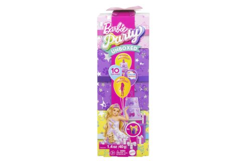 Bábiky Barbie® Party Reveal prináša nový spôsob rozbaľovania s tematickými doplnkami a kúzelnou zábavou pri miešaní a tvorení! Každá bábika skrýva prekvapenie, vrátane zmeny farby. Deti postupne odhalia bábiku, zvieratko, oblečky a doplnky, a vďaka magickému prášku môžu vytvoriť farebnú modelínu. S priloženou táckou je možné vytvárať tvary a pečiatky pre ešte väčšiu zábavu! Každá bábika sa predáva samostatne v závislosti od dostupnosti.