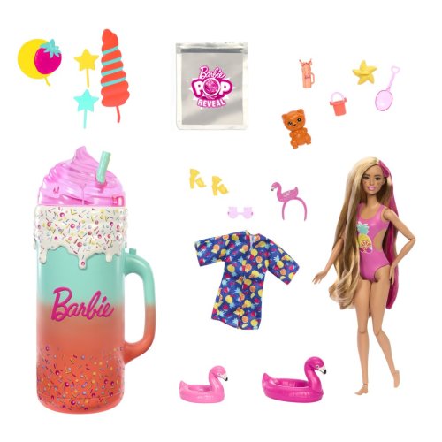 Darčeková súprava Barbie® Pop Reveal™ Deluxe šťavnaté ovocie prekvapí bábikou a zábavnými módnymi doplnkami a doplnkami s ovocnou tematikou!