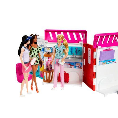 Herný set Barbie® Sanitka a klinika 2 v 1 ponúka dve možnosti hry. Sanitka rýchlo príde za pacientom za sprievodu zvukov a svetiel, ktoré sa aktivujú stlačením tlačidla. Zdvihnutím páčky na bočnej strane sanitky ju deti môžu otvoriť a rozložiť na kliniku, ktorá ponúka tri herné priestory: čakáreň, príjmovú zónu a ordináciu s vyšetrovacím lehátkom. Viac ako 20 doplnkov podnecuje fantáziu k starostlivosti o pacientov a hru na doktorov a sestričky. Súčasťou je lehátko, ktoré je možné nadvihnúť pre väčší komfort pacienta, barle, röntgenové snímky, stetoskop, lekárske nástroje a ďalšie. Bábika nie je súčasťou balenia. Farby a prevedenia sa môžu líšiť.