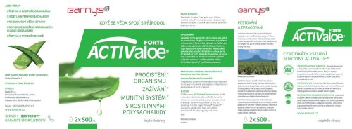 Upozornenie : Ukladajte mimo dosahu detí. Nie je určené ako náhrada pestrej stravy. Dbajte na rôznorodú a vyváženú stravu a zdravý životný štýl. Výrobok nie je určený pre deti a dospievajúce, dojčiace a tehotné ženy. Neprekračujte odporúčané denné dávkovanie. Nepoužívajte, ak je obal porušený. Vhodné pre celiakov - bez lepku. Barny´s ACTIValoe® FORTE neobsahuje cukry, farbivá ani zahusťovadlá! Kryštalizácia roztoku alebo žltkasté zafarbenie nie je na závadu.