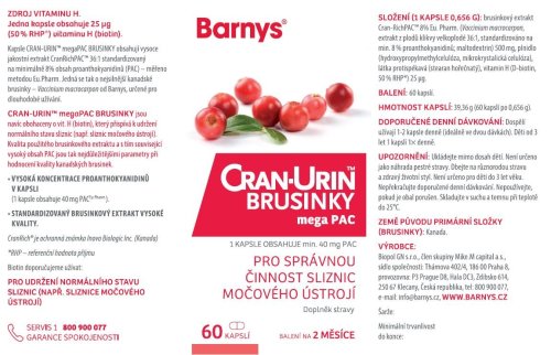 Cran-Urin™ megaPAC BRUSINKY sú navyše obohatené o vitamín H (biotín), ktorý prispieva k udržaniu normálneho stavu slizníc (napr. slizníc močového ústrojenstva) .