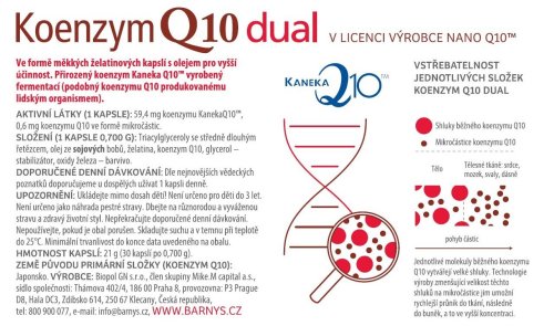 Doplňovanie koenzýmu Q10 zo stravy aj doplnkov stravy naráža na jeho ťažkú vstrebateľnosť. V Barny's tento problém riešime najvyššou kvalitou koenzýmu Q10 od japonskej značky Kaneka, ktorý je štruktúrou veľmi podobný ľudskému koenzýmu Q10. Pre ešte vyššiu vstrebateľnosť obsahuje aj mikronizovanú formu koenzýmu Q10 .