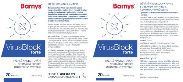 Barny´s VirusBlock™ forte obsahuje štandardizované rastlinné extrakty ženšenu, aloe a kozinca doplnené o vitamín C a zinok , ktoré podporujú dobrú funkciu imunitného systému. Táto výnimočná kombinácia podporuje naštartovanie imunitného systému pri prvých náznakoch jeho oslabenia. Vo väčšine prípadov stačí užívať iba 5 dní.