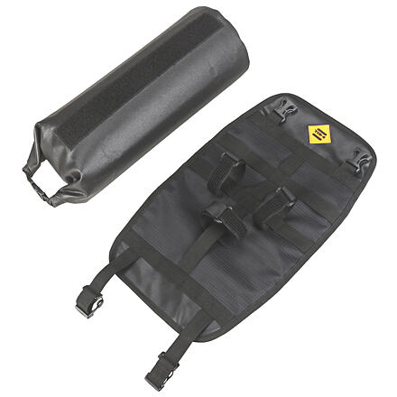 Taška na riadidlá B-SOUL Barrel je pre svoju vodeodolnú konštrukciu vhodná na uloženie základných vecí, ktoré treba udržať za každú cenu v suchu a oceníte ju predovšetkým pri dovolenke trávenej na bicykli. Vďaka použitému materiálu nemusíte mať obavy z prevlhnutia obsahu. Taška je vyrobená z kombinácie syntetických materiálov (polyester + TPU) v tvare valca s dĺžkou približne 55 a priemerom 15 cm. Ponúka tak priestor cca 10 litrov pre najrôznejšie vybavenie a doplnky, ako je napríklad oblečenie, menší spacák alebo jedlo. Všetky nanesené nečistoty počas jazdy ľahko z tašky zotrite vlhkou handrou. Hmotnosť tašky Barrel je 330 gramov. Priestor valcovitej tašky je prístupný z jednej strany s vystuženým ústím, ktoré po vyplnení obsahom niekoľkokrát prehnete a zapínacou prackou zaistíte . Tašku pripevníte na riadidlá každého bicykla prostredníctvom troch pásikov na suchý zips. Moderné cyklistické vybavenie od spoločnosti B-SOUL vám spríjemní výlety na bicykli.