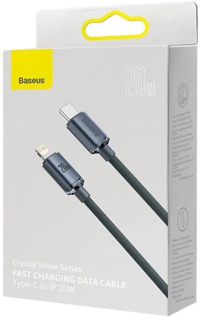 Baseus Crystal Shine je spoľahlivý nabíjací a synchronizačný kábel slúži na nabíjanie zariadenia. Baseus Crystal Shine Series nabíjací a dátový kábel z USB-C na Lightning a podporovaným výkonom až 20W Dĺžka kábla je 1.22m. Vďaka pevnému nylonovému opleteniu je veľmi odolný.