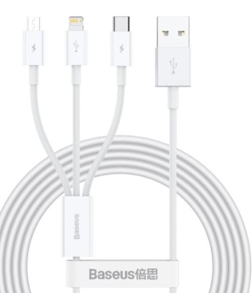 Baseus Superior 3v1 kábel na nabíjanie zariadení s USB-C, Lightning a microUSB z USB konektora notebooku alebo sieťovej nabíjačky.