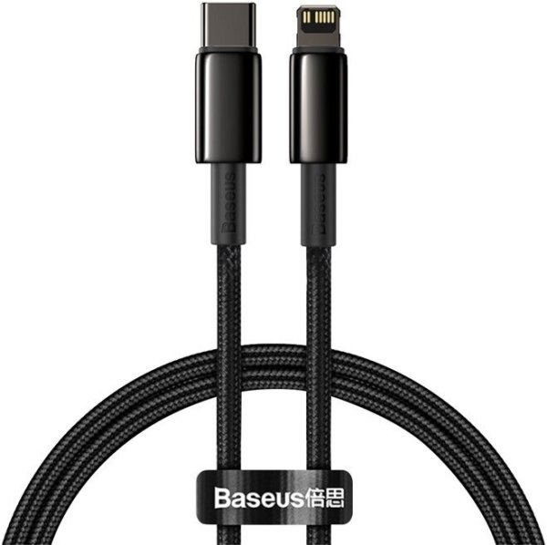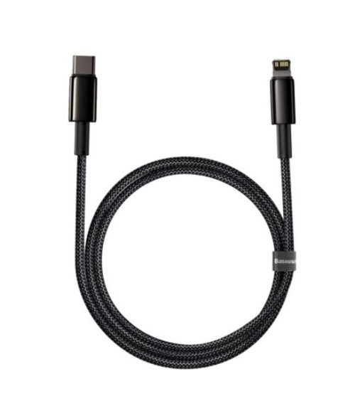 Baseus Tungsten Gold kábel pre nabíjanie Lightning zariadenia z USB-C nabíjačky alebo konektora notebooku. Kábel je opletený pre maximálnu pevnosť a dlhú životnosť, podporuje až 20W nabíjania. V balení ďalej nájdete suchý zips pre pohodlné a ľahké zopnutie kábla napr pri preprave.