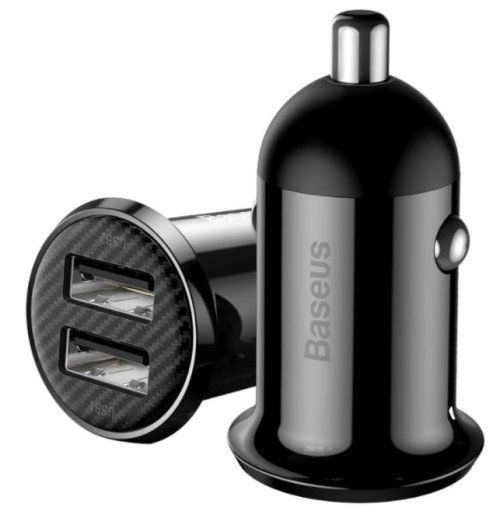 Baseus Grain Pro Dual USB kompaktná nabíjačka s nabíjacím prúdom až 4.8A Naozaj minimalistické prevedenie, dva USB výstupy a minimalistický dizajn ako perfektný doplnok interiéru vášho vozidla. Nabíjačka podporuje nabíjací prúd a napätie 5V a 2.4A
