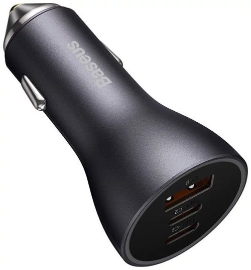 Baseus Golden Contactor Pro. Poteší vás moderným dizajnom a robustným puzdrom, ale aj rýchlym nabíjaním s maximálnym výkonom 65 W. Má 2 porty USB-C a 1 USB-A, čo umožňuje nabíjať 3 zariadenia súčasne. Je kompatibilný s univerzálnym napätím 12/24 voltov, takže je vhodný pre osobné automobily, karavany alebo väčšie nákladné automobily.