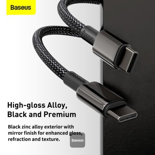 Baseus Tungsten Gold dátový kábel na rýchle nabíjanie Type-C až Type-C 100W 2M – čierny