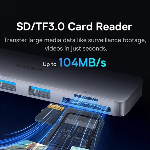 *40Gbps Hyper-Fast Transfer *Magnetický dizajn - S magnetickou nálepkou pre bezpečnejšie pripojenie bez poškodenia pôvodného portu alebo blokovanie nabíjacieho portu *8,3 mm ultratenké telo - Miniatúrny a kompaktný dizajn, ktorý sa hodí priamo k vášmu notebooku a ľahko sa prenáša a skladuje *Rýchlosť čítania mediálnych dát počas niekoľkých sekúnd *PD 100W Fast Charging - Rýchle nabíjanie *Vynikajúca kontrola teploty - BCT (Baseus Cooling Tech) pomáha odvodu tepla pre stabilnejšiu prevádzku pri plnej záťaži bez prehrievania