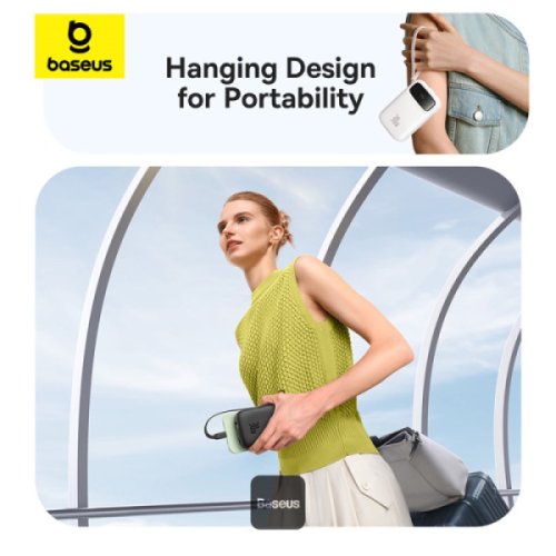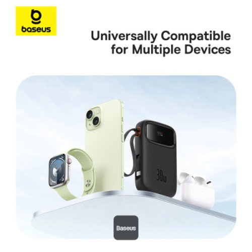 Baseus QPow2 10000mAh Digital Display Fast Charge Power Bank 30W so vstavaným duálnym káblom typu C - čierny