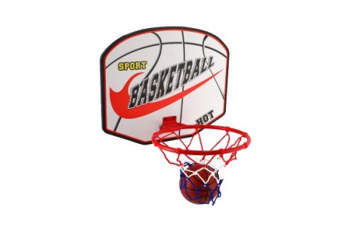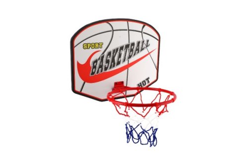 Basketbalový kôš s drevenou doskou na zavesenie, loptu a pumpička na nafúknutie lopty. Veľkosť drevenej dosky 48,5 x 39,5 cm. Priemer lopty je 14 cm. Vhodné od 3 rokov.