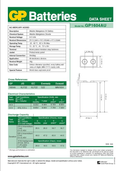 možnosť nabíjania: nie chemické zloženie: alkalické napätie: 9 V kategórie/rada: Ultra Alkaline typové označenie: 6LF22 9 V (1604) rozmer: 26,5 × 17,5 × 48,5 mm cena za množstvo: cena za 1 ks predajná …