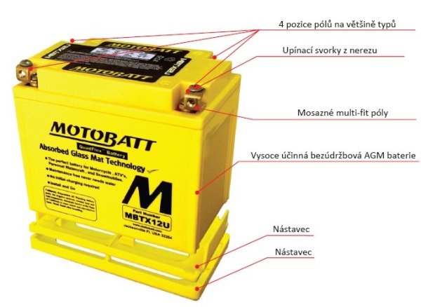 Odolnosť Motobatt k rôznym režimom prevádzky . Pre motocykle (a im podobné vozidlá) je charakteristická nepravidelná prevádzka, teda časté obdobia, kedy batéria zostáva v nedobytom stave. Oproti klasickej konštrukcii vedia separátory AGM výrazne spomaliť prirodzenú sulfatáciu článkov.