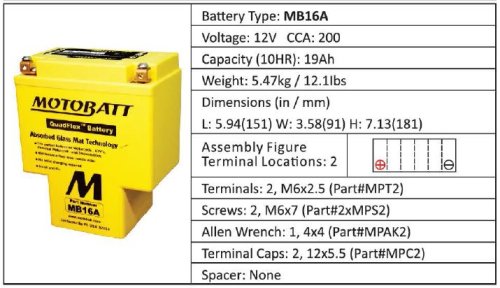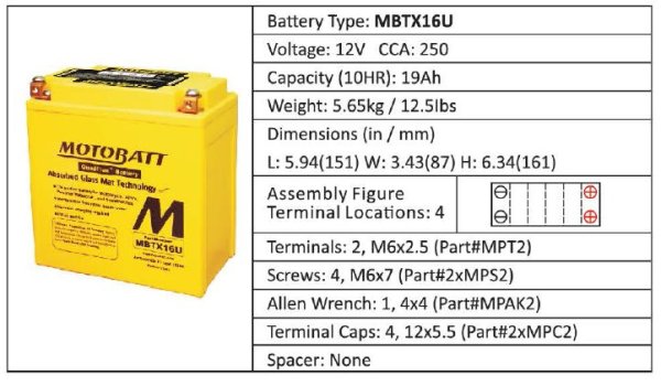 Nabite svoju motorku motobatérií MOTOBATT MBTX16U s 19 Ah . Ide o náhradu za batérie: HYB16A-AB, HYB16A-A a MB16A.
