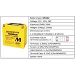 Motobatéria MOTOBATT MB16AU 20,5Ah náhrada batérií: YB16AL-A2, MB16AUs s vyššou kapacitou oproti konkurenčným akumulátorom, pri zachovaní veľkosti a AGM technológií (elektrolyt napustený v sklenom rúne) umožňuje variabilné umiestnenie batérie , tzn. môže byť naklonená, alebo aj ležať.