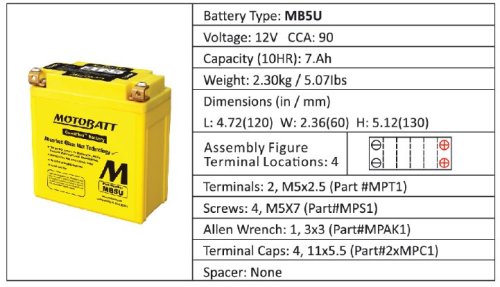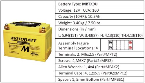 Nabite svoju motorku motobatérií MOTOBATT MBTX9U s 10,5 Ah . Ide o náhradu za batérie: YTX9BS, YT12ABS, YTZ14S, YTZ12S a MBTX9U.