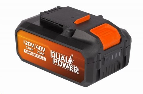 Môžete však tiež pripojiť 40V batériu na 20V duálne stroje. Výrazne tým predĺžite dobu prevádzky strojov Dual Power. Obe lítium-iónové batérie je možné nabíjať rovnakou nabíjačkou 20/40V . Duálna batéria spolupracuje iba s AKU náradím a záhradnou technikou z radu Powerplus Dual Power.