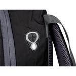Batoh môžete nosiť klasicky na chrbte alebo v ruke pozdĺž tela pomocou ucha na jeho hornej časti . Dĺžku anatomických ramenných popruhov si nastavíte tak, aby ste sa cítili pri jeho nosení komfortne. Bedrový pás s prackou zlepšuje upevnenie batohu na tele, čo využijete pri dlhšom cestovaní a pri behu.