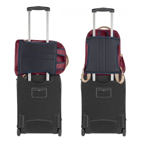 • vďaka svojim dômyselným otvorom v zadnej časti ho možno nasunúť na teleskopickú rukoväť kufra