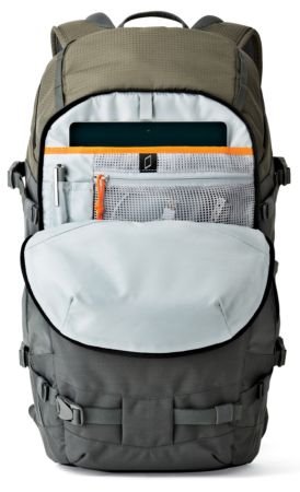 Dvojkomorový batoh Lowepro Flipside Trek 450 AW so zadným otváraním spodnej fotokomory, hornou komorou na osobné veci a veľkým predným vreckom na tablet, notebook a ďalšie osobné veci vás bude sprevádzať na všetkých cestách za dokonalým záberom. Vďaka modernej konštrukcii je možné foto batoh jednoducho prestavať na jednokomorový turistický batoh.