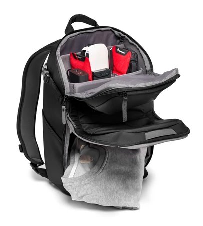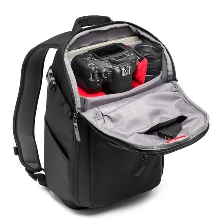 Praktický, kompaktný plecniak Manfrotto Advanced Compact Backpack III je ľahko prenosný. Uložiť môžete DSLR fotoaparát so snímačom plodín, CSC. Polstrovaná horná priehradka je navrhnutá pre CSC (ako Sony radu A60000) a pojme ďalšie 2 až 3 objektívy v závislosti od veľkosti. Prepážky v hornej komore zaistia prehľadnosť uložených vecí. Do spodnej priehradky je možné vložiť svoje osobné veci. Rýchly prístup k nim umožní samostatný zips . Malý statív uchytíte pomocou bočných popruhov, a tým bude vždy po ruke. Elastické vrecká vám umožnia nosiť sebou fľašu s pitím a dáždnik. Obsahuje priehradku aj pre notebook do 13" . Komfortné nosenie batohu zaistí extra polstrovaný chrbát, ergonomické ramenné popruhy a nastaviteľný hrudný pás.