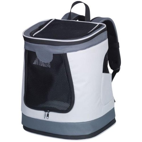 Zadný batoh Nobby PLATA na mačky a malé psy s maximálnou hmotnosťou do 10 kg. Je vyrobený z odolného, umývateľného mikrovlákna. Ideálne pre trekking a väčšie výlety, má veľmi stabilné dno a pohodlný polstrovaný chrbát. Integrovaná karabína vo vnútri batohu zabraňuje zvieraťu vyskočenie von. Sieťové časti zaručujú cirkuláciu vzduchu vo vnútri aj pri zatvorení batohu. Batoh má dve malé vrecká na maškrty alebo hračky.