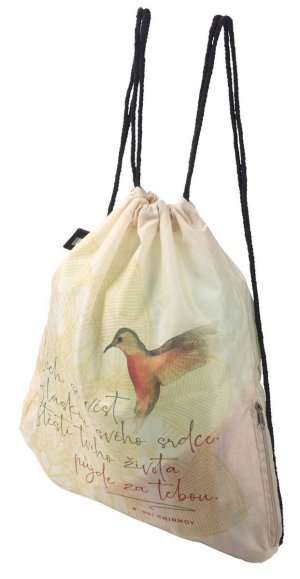 Ľahký a praktický batoh, ktorý ľahko zbalíte do jeho bočného vrecka. Toto vrecko potom slúži na uloženie drobností. Krásny dizajn a inšpirujúci aforizmus ho predurčujú aj ako krásny darček, ktorý bude prinášať radosť znova a znova. Vyrobený z recyklovaných PET fliaš, rozmery 34x41cm, nosnosť až 10kg.