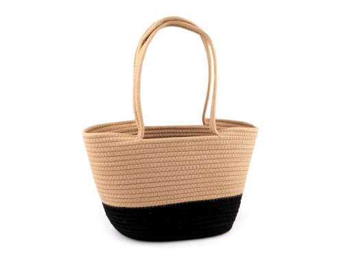 Z priestrannej bavlnenej kabelky budete nadšení. Vynosíte ju do mesta, zmestí sa do nej aj menší nákup, hodí sa aj na piknik v prírode a pod. Má zaujímavú štruktúru, ktorá vznikla zošitím bavlnenej šnúry dookola. Dno je oválne, uchá sú na nosenie v ruke.