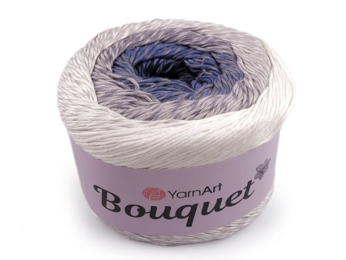 Bavlnená pletacia priadza Bouquet je zaujímavá svojimi pozvoľnými farebnými prechodmi, s ktorými budú všetky výrobky vyzerať originálne. Je veľmi príjemná na tele a vhodná na pletenie aj háčkovanie plédov, letných svetríkov, ponč, šálov a pod. Veľkosť ihlíc: 4 Veľkosť háčika: 4