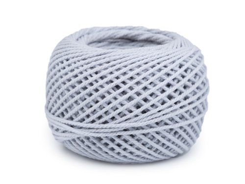 Bavlnená priadza pripomína povrázok. Je vhodná na háčkovanie tašiek, sieťoviek, klobúkov a rôznych dekorácií. [Využijete ju aj u obľúbenej techniky macrame.] Neodporúčame ju na odevy. Veľkosť háčika: 4 - 4,5
