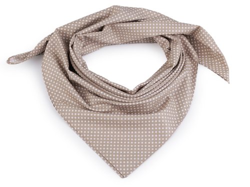 Bavlnenú šatku s drobnými bodkami môžete nosiť nielen okolo krku, ale aj ako pokrývku hlavy. Materiál je príjemný na dotyk. Potlač šatky je jednostranný.