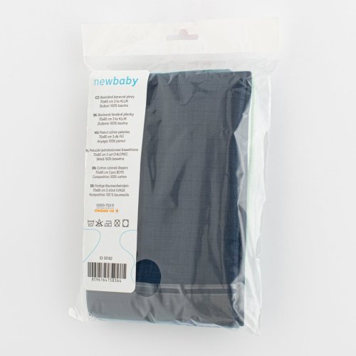 Bavlnené detské plienky českej značky New Baby vo zvýhodnenej sade, sú nepostrádateľnou súčasťou výbavičky pre bábätko. Balenie obsahuje 3 ks. Vhodne zvolené farby pre chlapčekov. Plienky sú vyrobené zo 100% bavlny. Sú hygienické, nespôsobujú alergickú reakciu a napomáhajú zdravému vývoju bedrových kĺbov u novorodencov. Môžete ich využívať nielen na prebaľovanie ale aj pod hlavičku bábätka v postieľke či kočíku. Vysoká kvalita spracovania.<BR>Charakteristika:<BR>Rozmery plienky: cca 70x80 cm<BR>Materiál: 100% bavlna<BR>Gramáž materiálu: 120g/m2<BR>Certifikát: OEKO-TEX STANDARD 100
