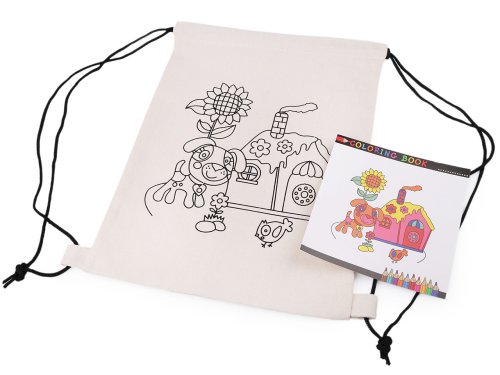Bavlnené vrecko na prezuvky má na prednej strane potlač s obrázkom. Je veľmi kvalitné a pevný. Sťahuje sa jednoducho pomocou šnúrok. Do vaku si deti môžu schovať topánky, prezuvky aj oblečenie. Vrecúško si môžu domaľovať podľa svojej fantázie alebo priloženého obrázku najlepšie farbami na textil.
