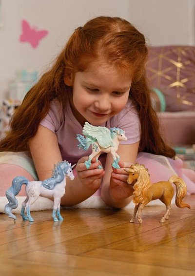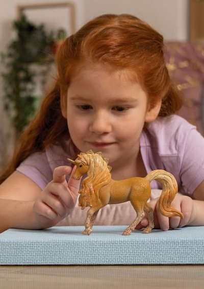 Hrdý žrebec jednorožca Apollo predstavuje udržateľnú solárnu energiu. Niet divu, pretože so svojou zlatohnedou srsťou a zlatým zúbkovaným hrebeňom na krku žiari ako slnko. Netrpezlivo švihá svojim bujným kučeravým chvostom sem a tam a klape kopýtky: Kde sú kobyla jednorožca Flowy a žriebä jednorožca Stormy? Chceli spoločne vyraziť na rodinný výlet a preskúmať krásny svet BAYALA®. Ale možno mu bude robiť spoločnosť niekto iný? Rozmery balenia: 11,8 x 16,4 x 3,9 cm. Vek: 5+
