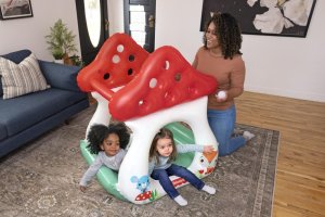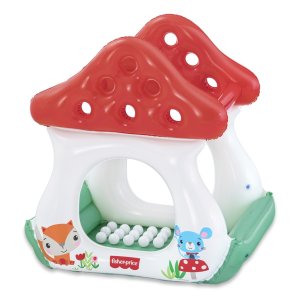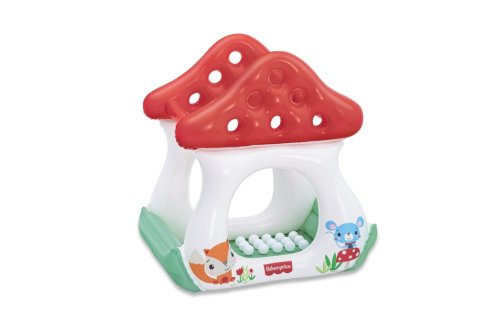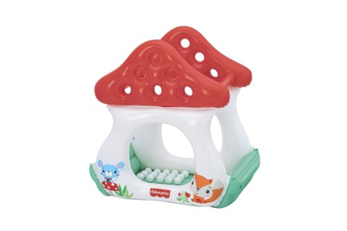 Bazénik nafukovací s loptičkami Muchotrávka od značky Fisher Price je určený pre deti od dvoch rokov a ponúka zábavné aj bezpečné prostredie pre aktívnu hru. Tento nafukovací bazén má tvar rozprávkovej muchotrávky s výraznou červenou strechou a bielymi stenami, doplnenými o farebné ilustrácie lesných zvieratiek, ako sú myška a líška. Spodná časť bazéna je zelená, čo vytvára príjemný a hravý kontrast farieb. Bazénik je vyrobený z odolného PVC, ktoré je vďaka svojej pevnosti a kvalitnému prevedeniu odolné voči mechanickému poškodeniu a zaisťuje stabilitu celej konštrukcie.