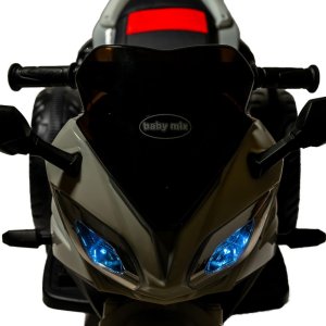 Detská elektrická motorka Rare Baby Mix je vybavená batériou 6V7AH a dvoma motormi s výkonom 380. Disponuje funkciou jednoduchého štartu na jedno tlačidlo, ktorá umožňuje jazdu vpred aj vzad. Motorka je vybavená hudbou, pesničkami pre deti, kartou na čítanie dát pre rané vzdelávanie, tromi kolesami a LED svetlometmi. Komfort zaisťuje kožené sedadlo.