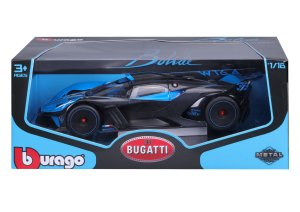 Kovový model Bburago BB11047BU Bugatti Bolide v modrej farbe je vhodný nielen pre zberateľov. Má otváracie dvierka a je veľké približne 24 cm.
