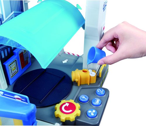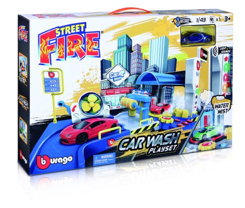 Autoumývačka je vyrobená z atraktívne zafarbených plastových dielikov, ktoré je možné ľahko zložiť a rozložiť. Autoumývačky je na 3 AAA batérie, ktoré sú priložené v balení. Vďaka batériám je funkčný semafor a tlačidlá, dokonca si do nádobky na vodu môžete naliať vodu. Autoumývačka bude fungovať až po pripojení semaforu k základni. S autoumývačkou Street Fire Car Wash zažijete veľa zábavy.