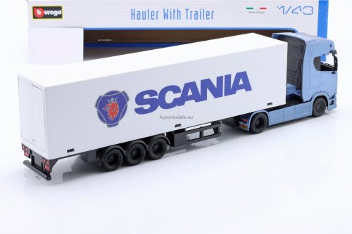 Kovové autíčko Bburago 1:43 Truck with trailer - Scania 770 S - White Trailer SCANIA