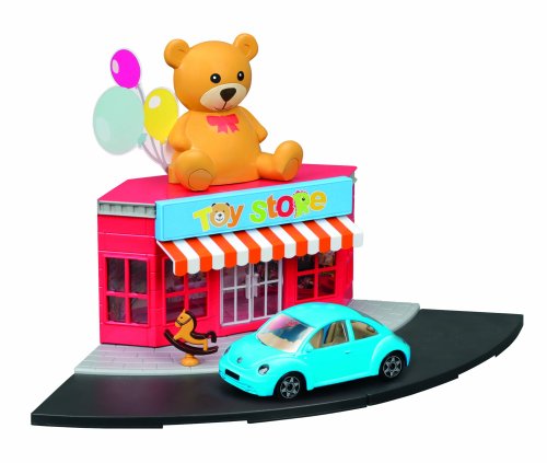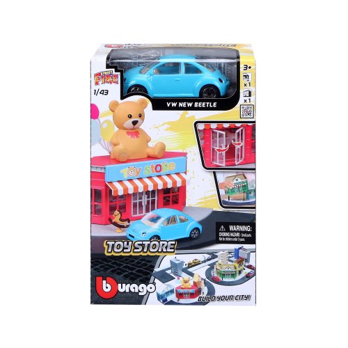 Hračkářství obsahuje okrem plastovej budovy s pohyblivými dverami aj pouličný a chodníkový komponent a rôzne doplnky.