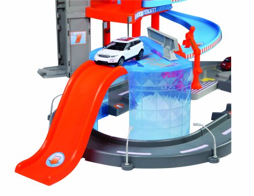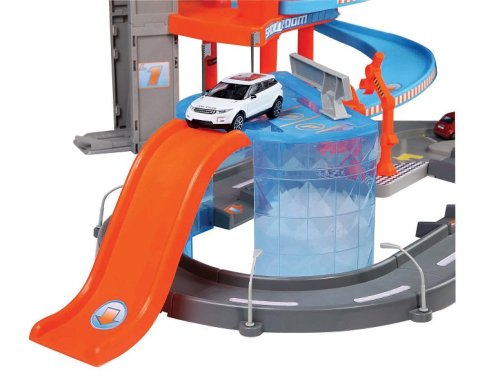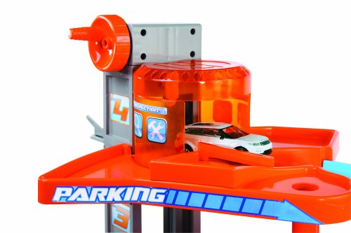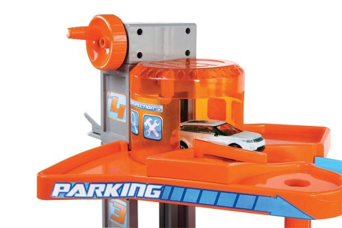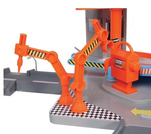 4 poschodia funkčný výťah Servisné 'robotické' ramená zdvíhacia plošina umývačka parkovisko 2 kovové modely autíčok - 1:43 Odporúčaný vek: od 3 rokov