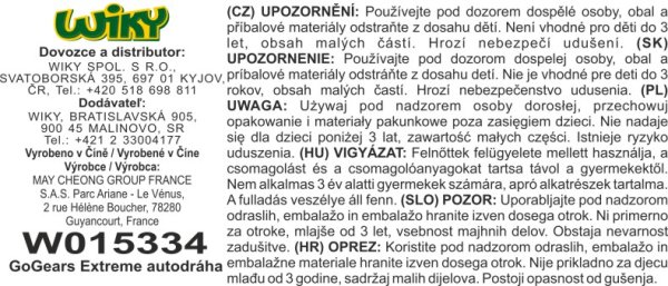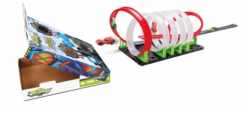 autodráha so 6 slučkami a rampou, 2 super rýchle autíčka súčasťou (možno dokúpiť W015332), na jedno natiahnutie autíčko dôjde až 25m, papierový terč s otvormi (3 zóny s bodovým ohodnotením)