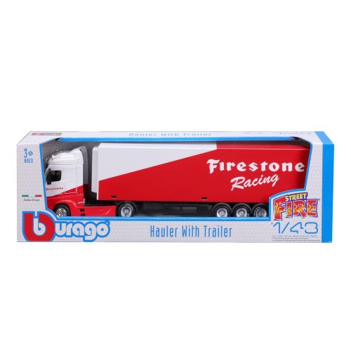 Modely kamiónov s prívesom Bburago v mierke 1:43 z kolekcie Street Fire sú zbierkou modelov s vysokým dôrazom na presnosť detailov. Modely sú vyrobené z liateho kovu s plastovými detailmi. Balené v krabičke. Nevhodné pre deti do 3 rokov. Rozmery balenia: 13,3 x 44,5 x 9,6 cm. Vek: 3+