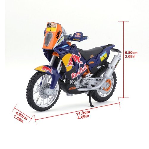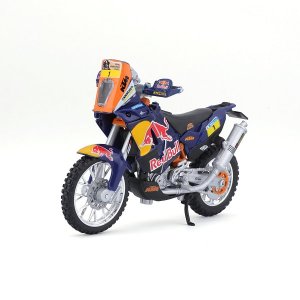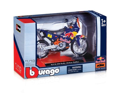 Modely motocyklov Bburago v mierke 1:18 z kolekcie RED BULL KTM FACTORY RACING sú zbierkou Rallye modelov s vysokým dôrazom na presnosť detailov. Modely sú vyrobené z liateho kovu s plastovými detailmi. Balené v krabičke. Nevhodné pre deti do 3 rokov. Rozmery balenia: 10,8 x 17,1 x 7,1 cm. Vek: 3+