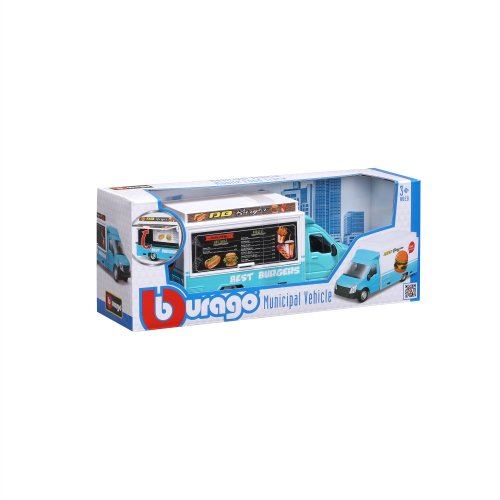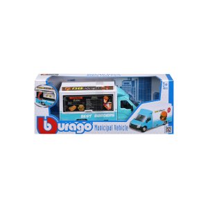 Modely technických a upratovacích vozidiel Bburago z kolekcie Municipal Vehicle sú zbierkou modelov s vysokým dôrazom na presnosť detailov a funkčnými prvkami. Food Truck má otváracie predajné okienko z boku vozidla a sklápací výdajný pult. Modely sú vyrobené z liateho kovu s plastovými detailmi. Balené v krabičke. Nevhodné pre deti do 3 rokov. Rozmery balenia: 9 x 22,1 x 6,7 cm. Vek: 3+