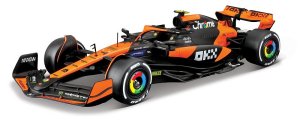 Bburago modely závodných vozidiel Formule 1 v mierke 1:24 z kolekcie RACE sú zbierkou krásneho designu s vysokým dôrazom na presnosť detailov. Súčasťou modelov je plastová figúrka jazdca F1 v majstrovskej póze. Modely F1 zo stajne McLaren MCL38 (2024) sú vyrobené z liateho kovu s plastovými detailmi. Každý z modelov je v klasickom závodnom designe a so závodným číslom. Balené v krabičke. Nevhodné pre deti do 3 rokov. Rozmery balenia: 12,7 x 28 x 12,7 cm. Vek: 14+