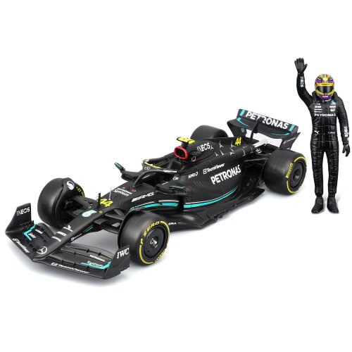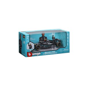 Bburago modely závodných vozidiel Formule 1 v mierke 1:24 z kolekcie RACE sú zbierkou krásneho designu s vysokým dôrazom na presnosť detailov. Súčasťou modelov je plastová figúrka jazdca F1 v majstrovskej póze. Modely F1 zo stajne Mercedes-AMG Petronas Team W14 E Performance (2023) sú vyrobené z liateho kovu s plastovými detailmi. Každý z modelov je v klasickom závodnom designe a so závodným číslom. Balené v krabičke. Nevhodné pre deti do 3 rokov. Rozmery balenia: 12,7 x 28 x 12,7 cm. Vek: 14+